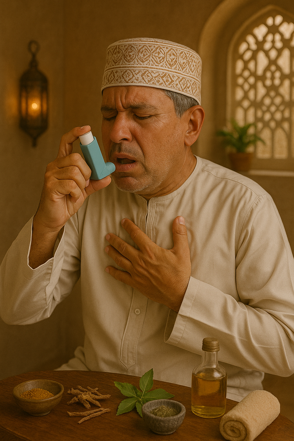 In Ayurveda, it’s known as Tamaka Shwasa, caused by the disturbance of Vata and Kapha doshas, which disrupts airflow and leads to symptoms like wheezing, breathlessness, and coughing.